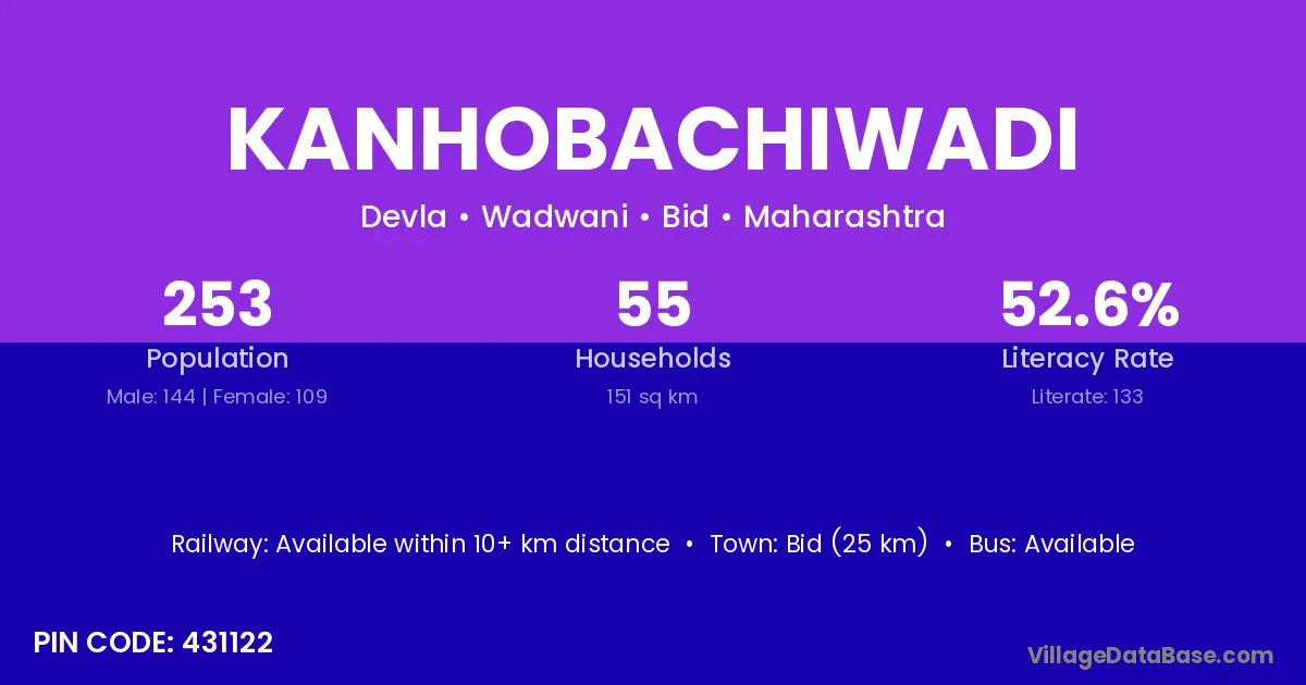Bid (1 km) is the nearest town to Kanhobachiwadi village for major economic activities and is located approximately 1 km away.
