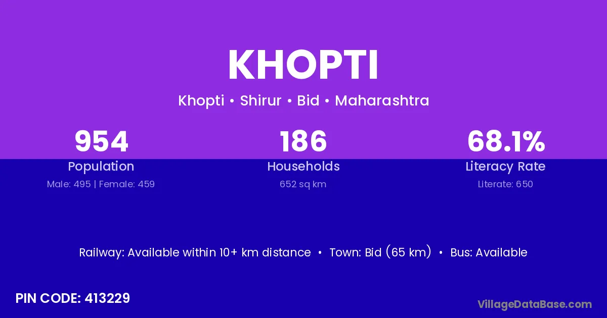 Bid (65 km) is the nearest town to Khopti village for major economic activities and is located approximately 65 km away.