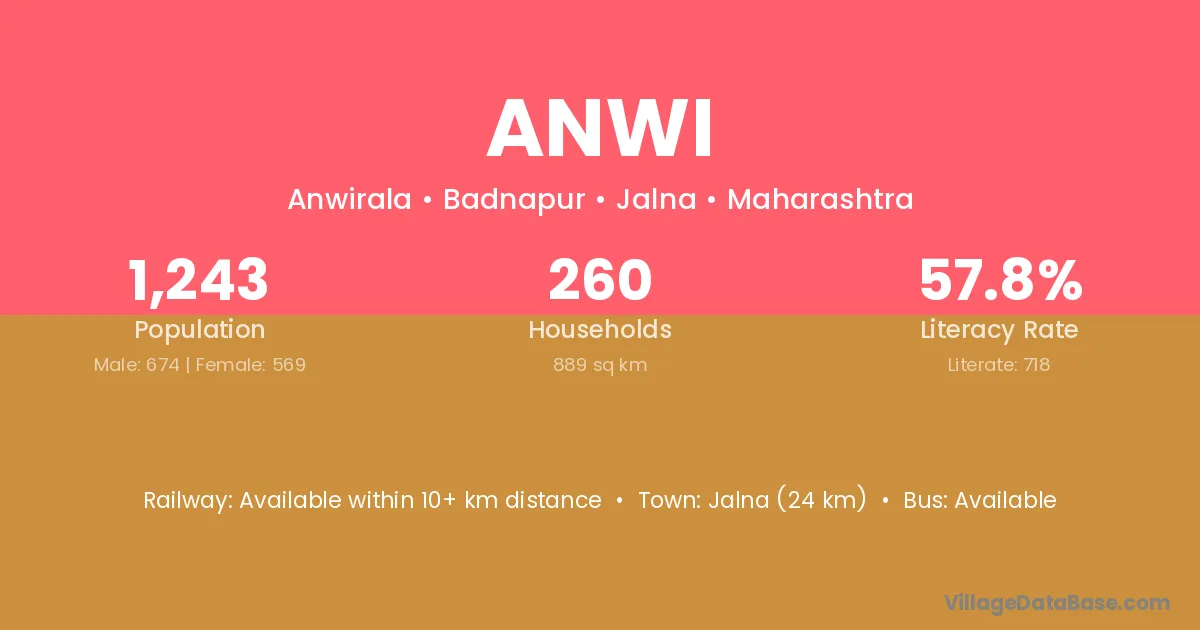 Chikhli (13 km) is the nearest town to Anwi village for major economic activities and is located approximately 13 km away.