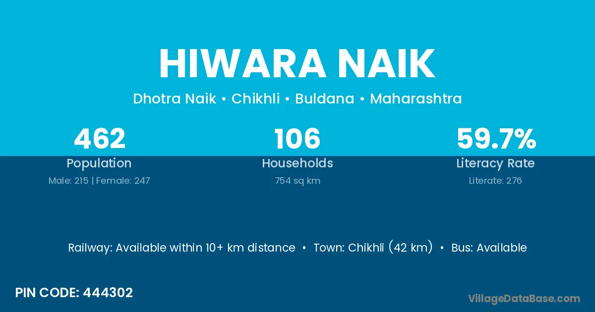 Hiwara Naik village has a total population of 462 people, of which 215 are males and 247 are females.
