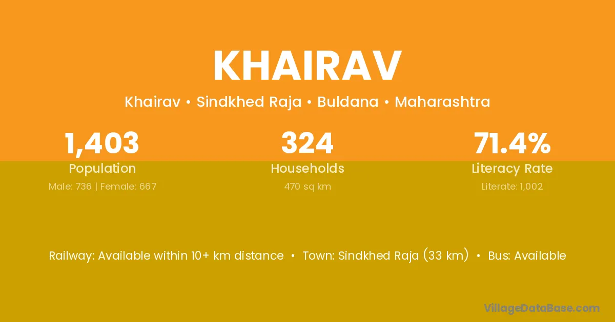 Chikhli (12 km) is the nearest town to Khairav village for major economic activities and is located approximately 12 km away.