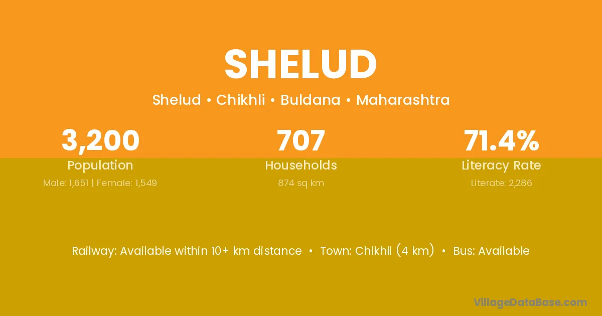 Chikhli (4 km) is the nearest town to Shelud village for major economic activities and is located approximately 4 km away.