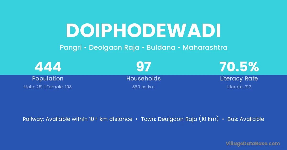 Doiphodewadi village has a total population of 444 people, of which 251 are males and 193 are females.