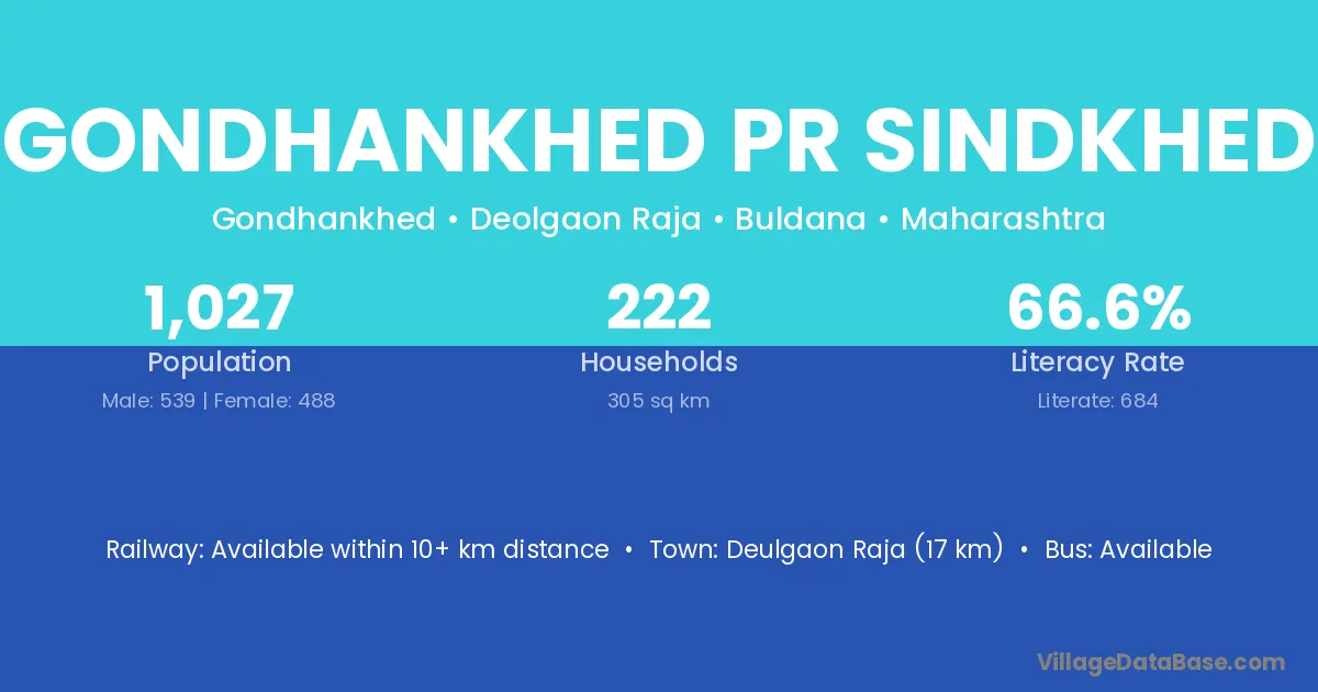 Deulgaon Raja (17 km) is the nearest town to Gondhankhed Pr Sindkhed village for major economic activities and is located approximately 17 km away.