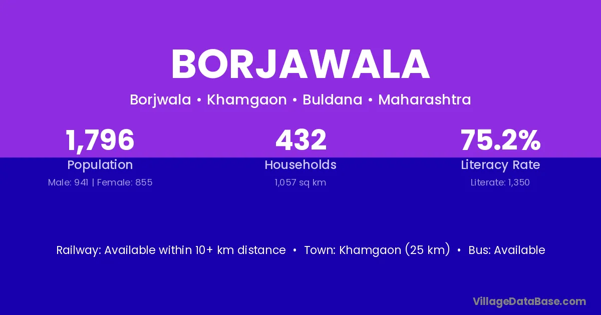 Khamgaon (25 km) is the nearest town to Borjawala village for major economic activities and is located approximately 25 km away.