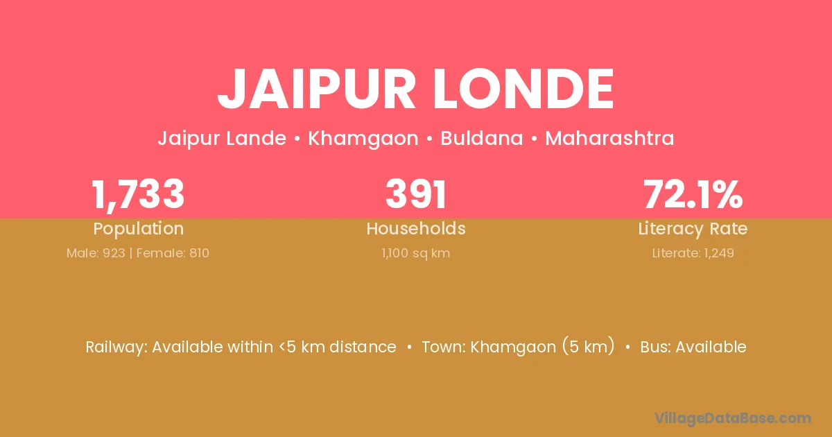 Khamgaon (5 km) is the nearest town to Jaipur Londe village for major economic activities and is located approximately 5 km away.