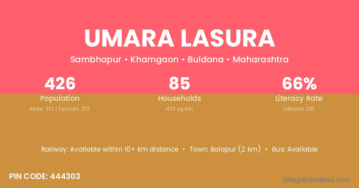 Balapur (2 km) is the nearest town to Umara Lasura village for major economic activities and is located approximately 2 km away.