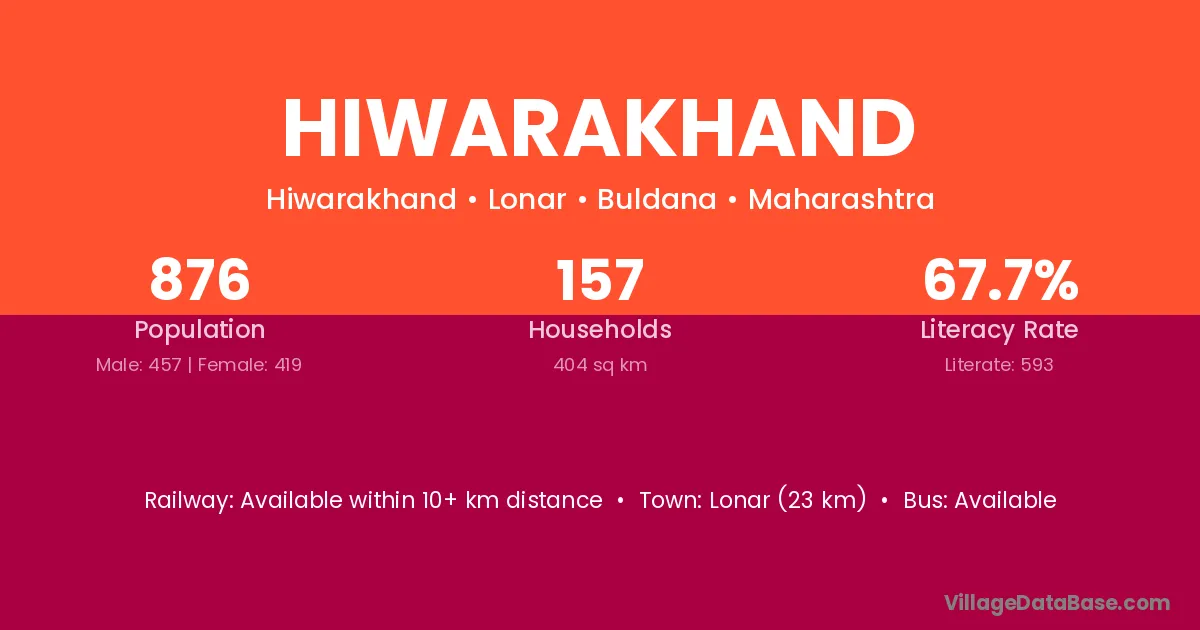 Lonar (23 km) is the nearest town to Hiwarakhand village for major economic activities and is located approximately 23 km away.