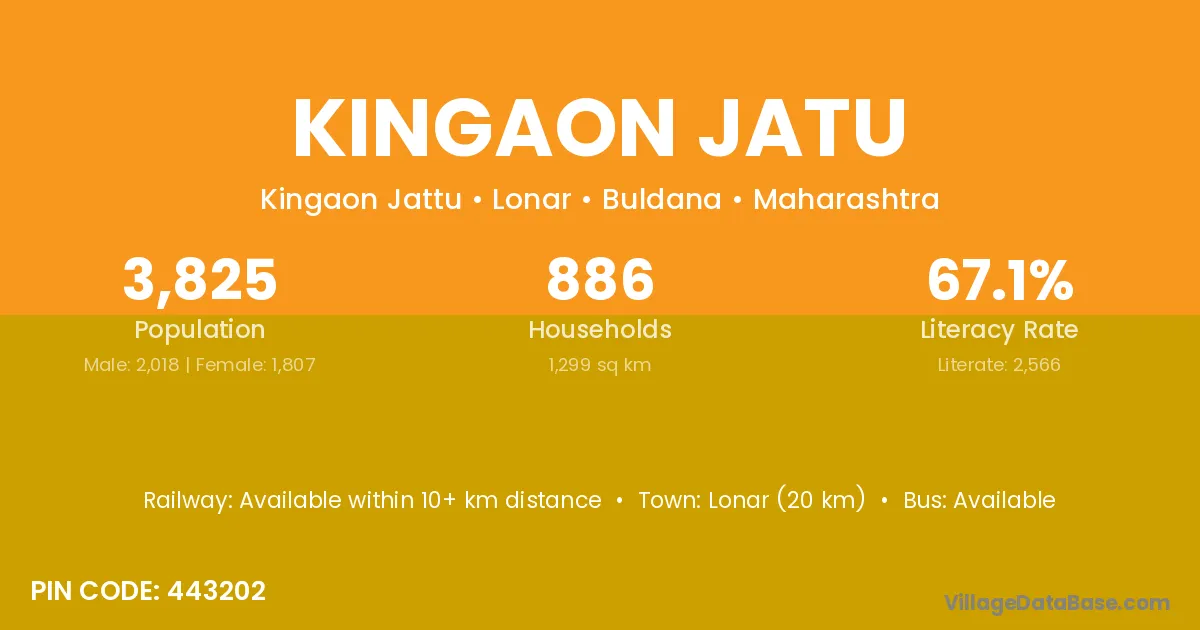 Lonar (20 km) is the nearest town to Kingaon Jatu village for major economic activities and is located approximately 20 km away.