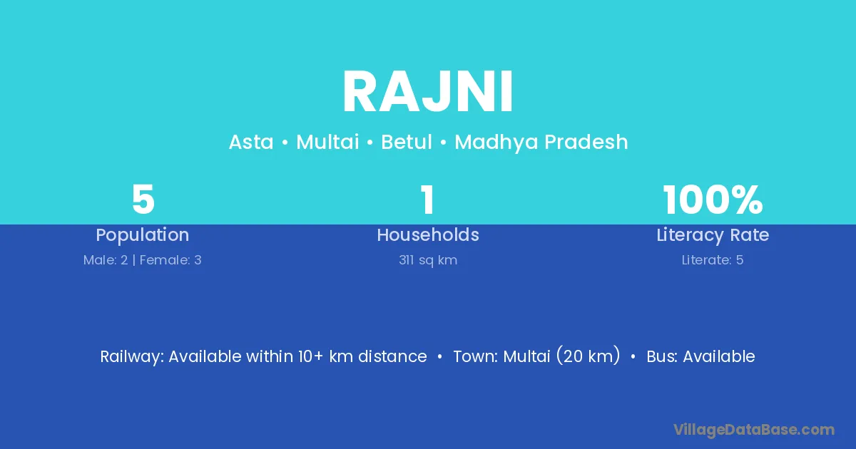 Lonar (16 km) is the nearest town to Rajni village for major economic activities and is located approximately 16 km away.