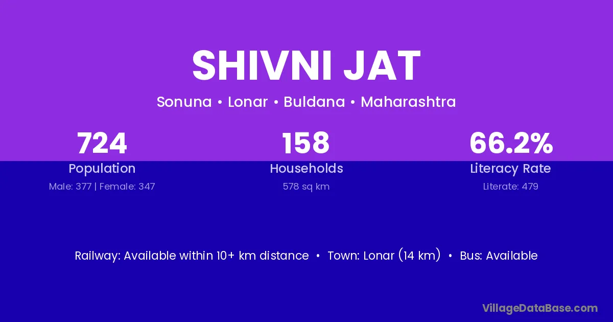 Lonar (14 km) is the nearest town to Shivni Jat village for major economic activities and is located approximately 14 km away.