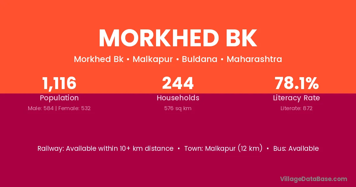Morkhed Bk village has a total population of 1,116 people, of which 584 are males and 532 are females.