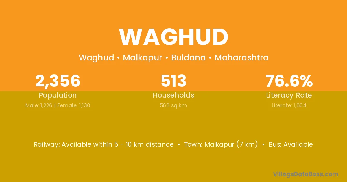 Malkapur (7 km) is the nearest town to Waghud village for major economic activities and is located approximately 7 km away.