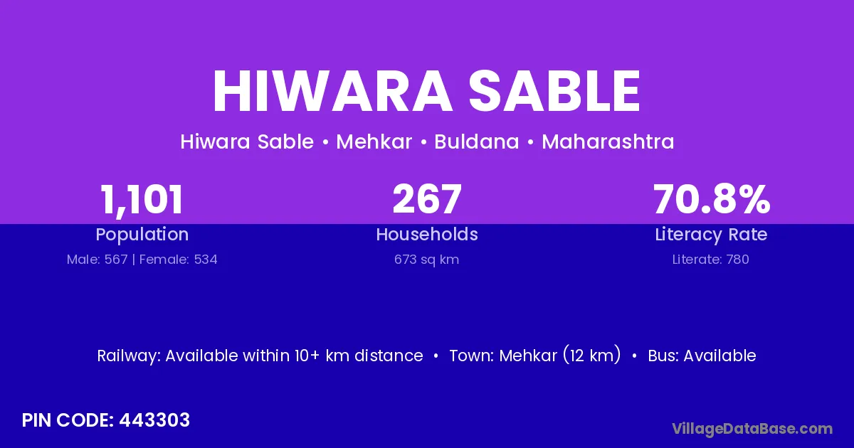 According to Census 2011 information, the village code of Hiwara Sable village is 443303.