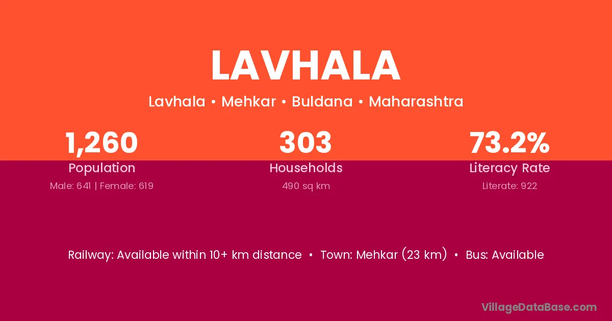 Lavhala village has a total population of 1,260 people, of which 641 are males and 619 are females.