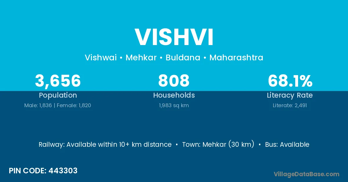 According to Census 2011 information, the village code of Vishvi village is 443303.