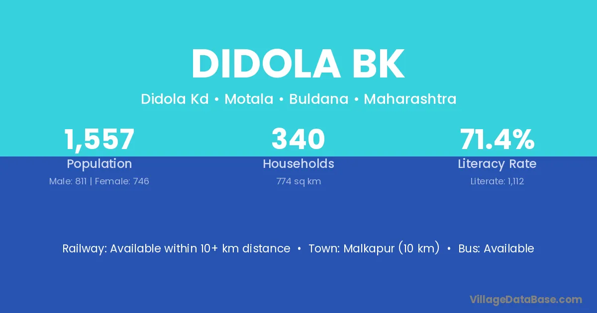 Malkapur (10 km) is the nearest town to Didola Bk village for major economic activities and is located approximately 10 km away.