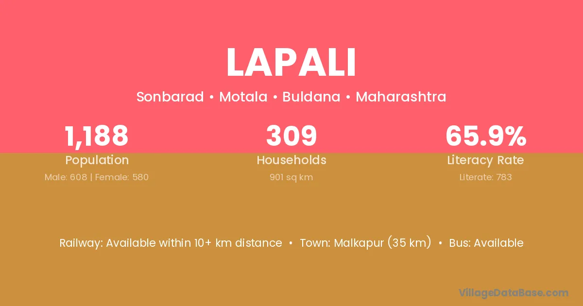 Malkapur (35 km) is the nearest town to Lapali village for major economic activities and is located approximately 35 km away.