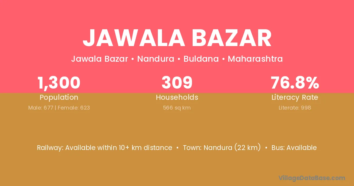 Nandura (22 km) is the nearest town to Jawala Bazar village for major economic activities and is located approximately 22 km away.