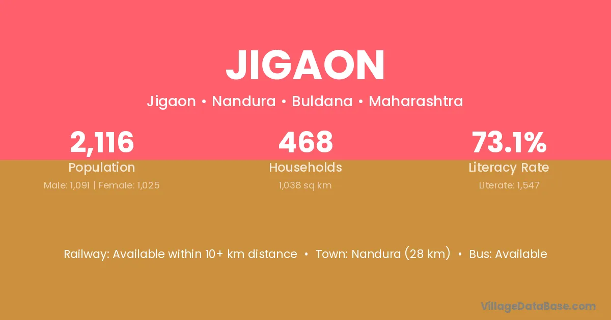 Nandura (28 km) is the nearest town to Jigaon village for major economic activities and is located approximately 28 km away.