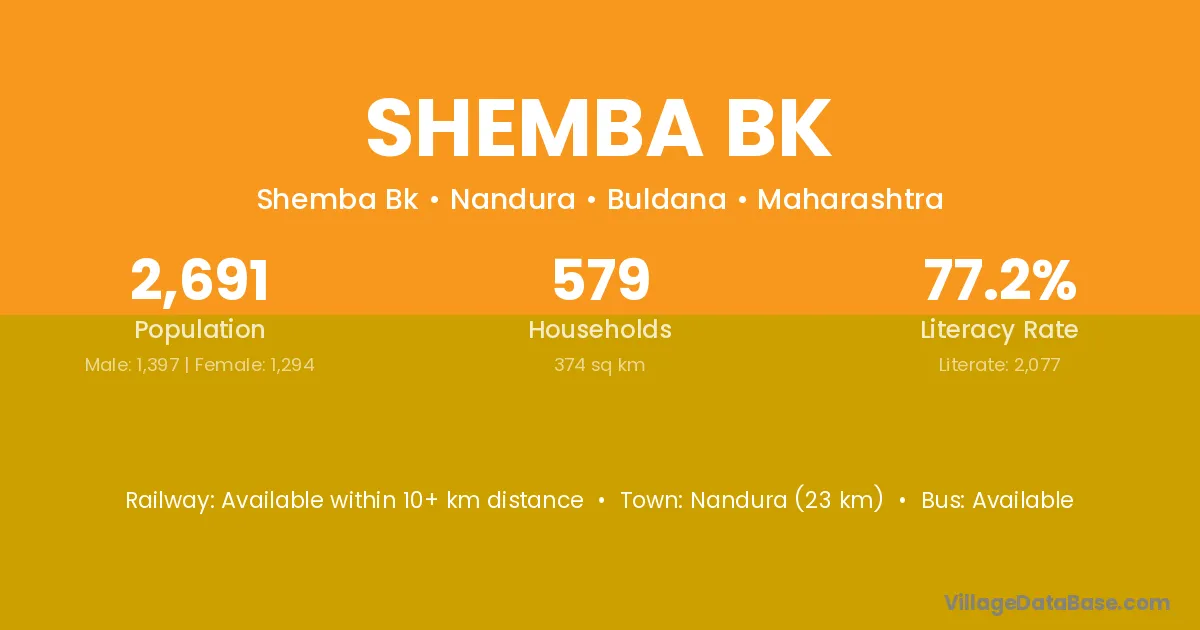 Shemba Bk village is located in the Nandura Tehsil of the Buldana district in Maharashtra .