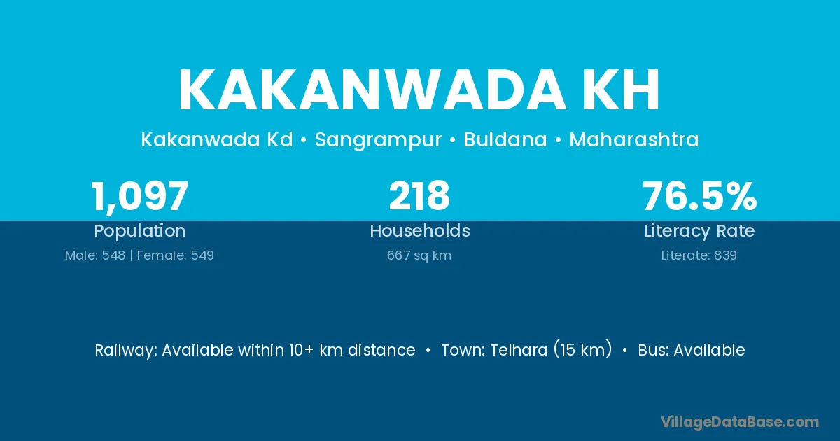 Kakanwada Kh village has a total population of 1,097 people, of which 548 are males and 549 are females.