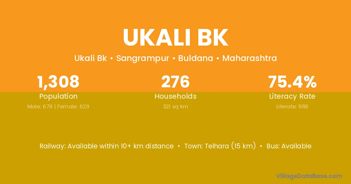 Telhara (15 km) is the nearest town to Ukali Bk village for major economic activities and is located approximately 15 km away.