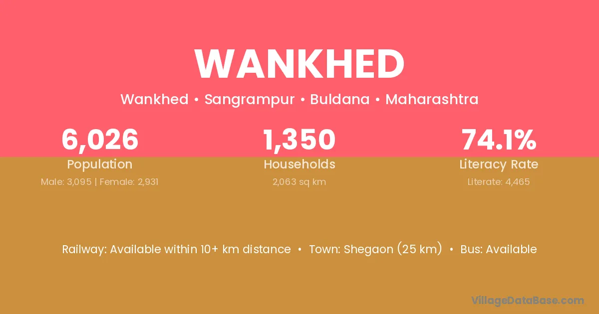 Wankhed village has a total population of 6,026 people, of which 3,095 are males and 2,931 are females.