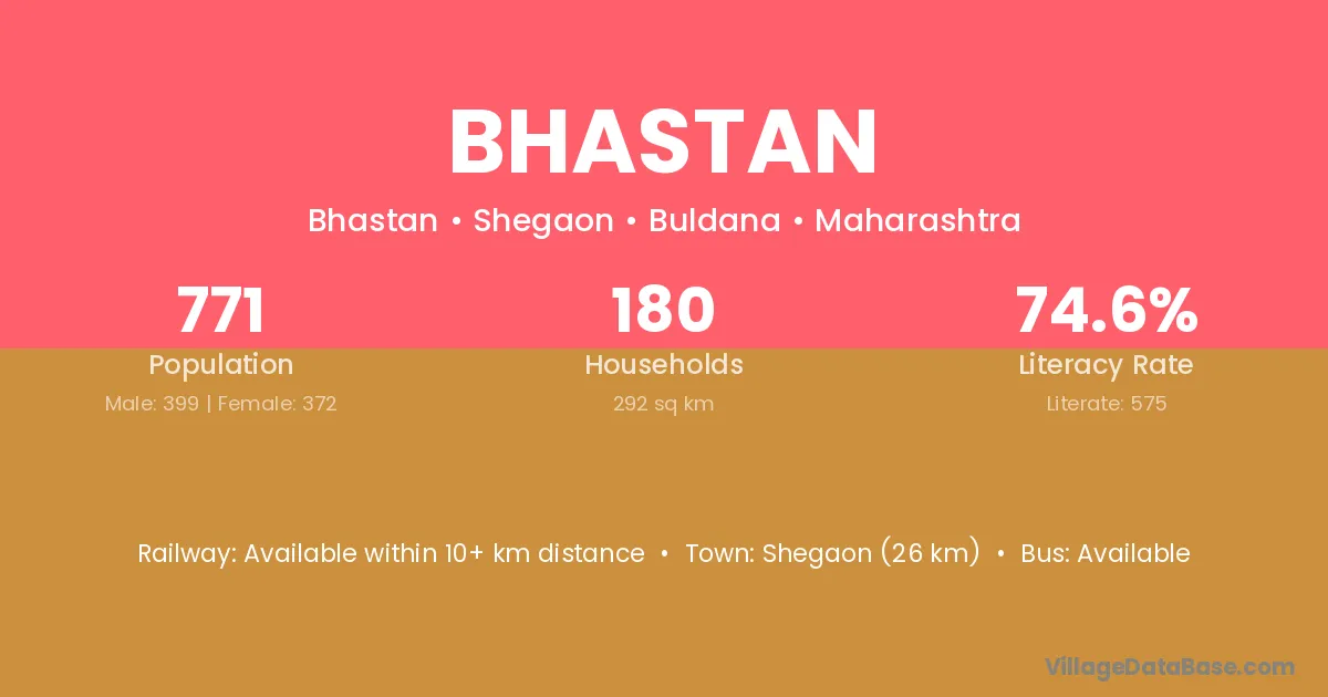 Shegaon (26 km) is the nearest town to Bhastan village for major economic activities and is located approximately 26 km away.