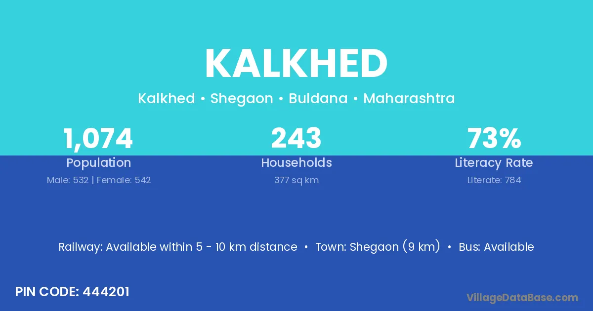 Shegaon (9 km) is the nearest town to Kalkhed village for major economic activities and is located approximately 9 km away.