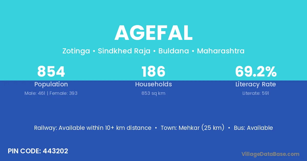 According to Census 2011 information, the village code of Agefal village is 443202.