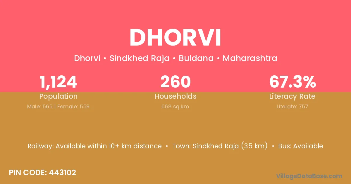 Sindkhed Raja (35 km) is the nearest town to Dhorvi village for major economic activities and is located approximately 35 km away.
