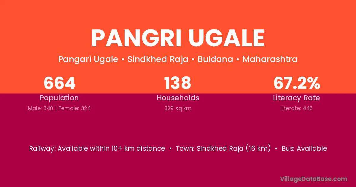 Pangri Ugale village has a total population of 664 people, of which 340 are males and 324 are females.