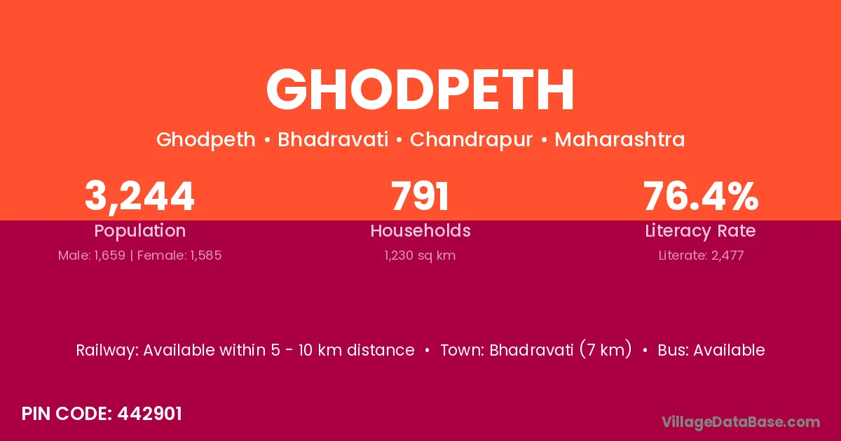 Bhadravati (7 km) is the nearest town to Ghodpeth village for major economic activities and is located approximately 7 km away.
