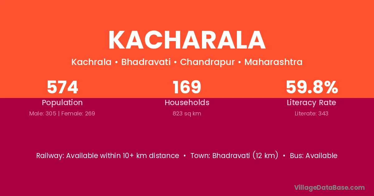 Bhadravati (12 km) is the nearest town to Kacharala village for major economic activities and is located approximately 12 km away.