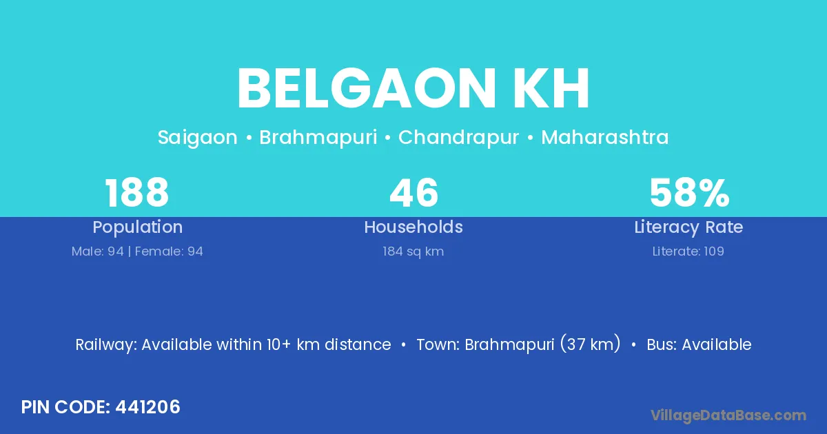 Brahmapuri (37 km) is the nearest town to Belgaon Kh village for major economic activities and is located approximately 37 km away.