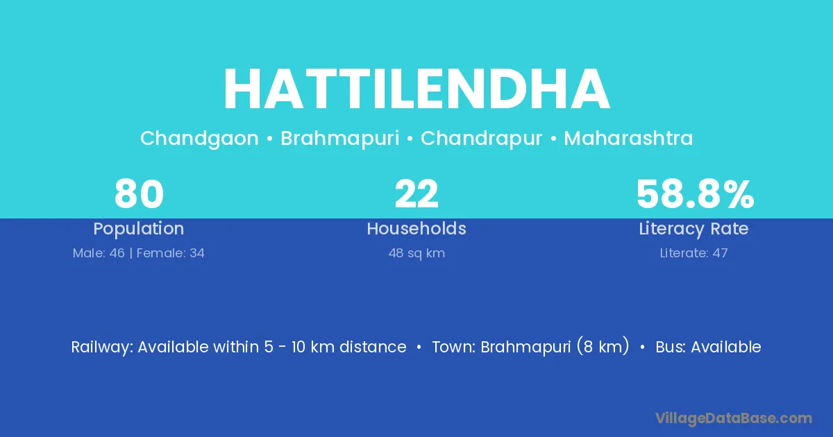 Brahmapuri (8 km) is the nearest town to Hattilendha village for major economic activities and is located approximately 8 km away.