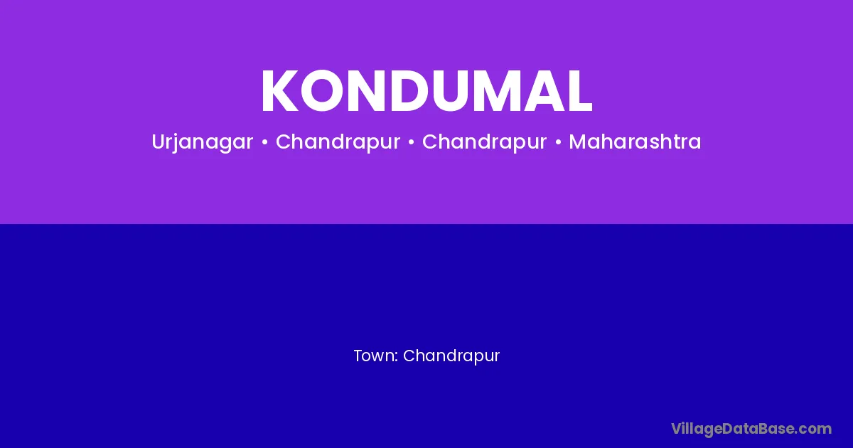 Chandrapur is the nearest town to Kondumal village for major economic activities