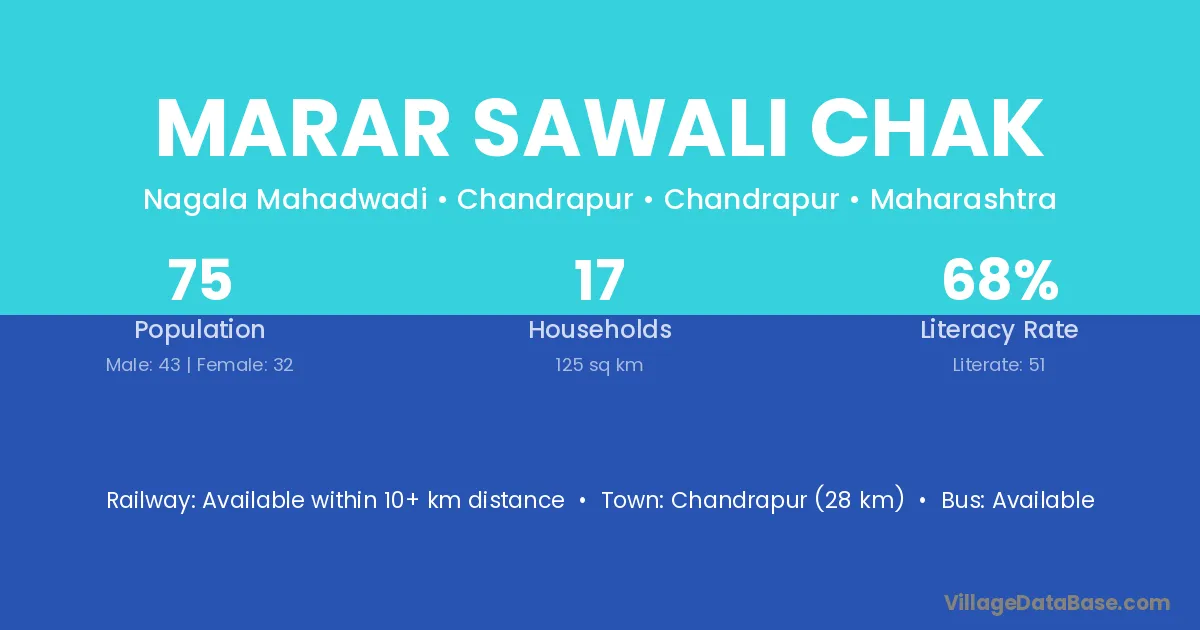 Chandrapur (28 km) is the nearest town to Marar Sawali Chak village for major economic activities and is located approximately 28 km away.