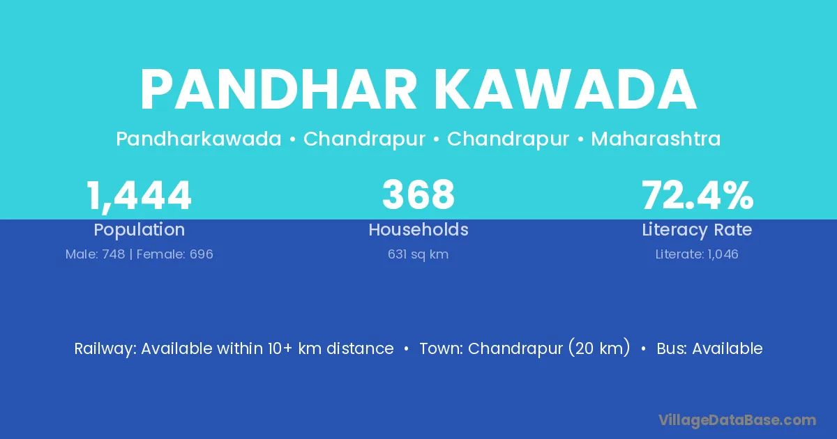 Chandrapur (20 km) is the nearest town to Pandhar Kawada village for major economic activities and is located approximately 20 km away.