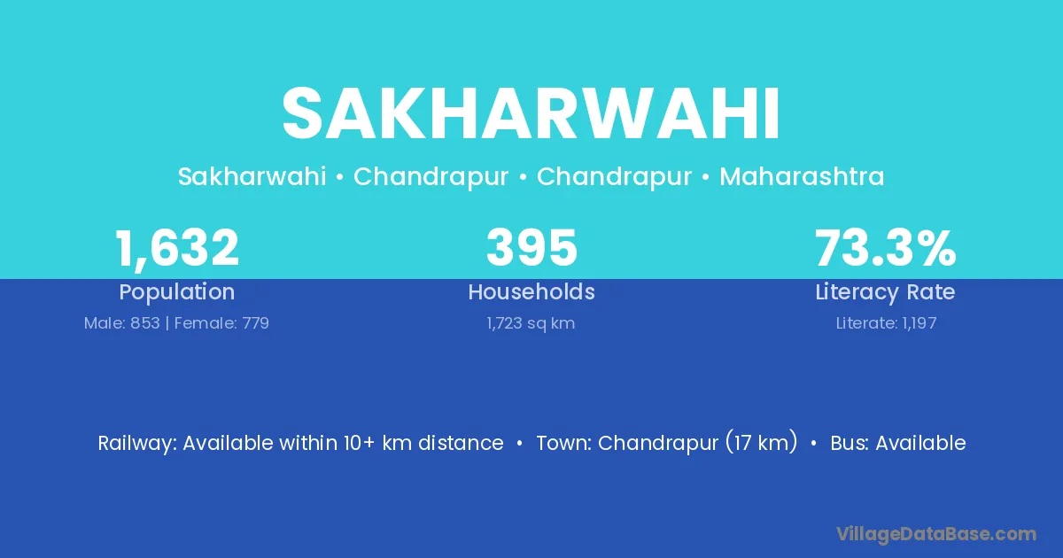 Chandrapur (17 km) is the nearest town to Sakharwahi village for major economic activities and is located approximately 17 km away.