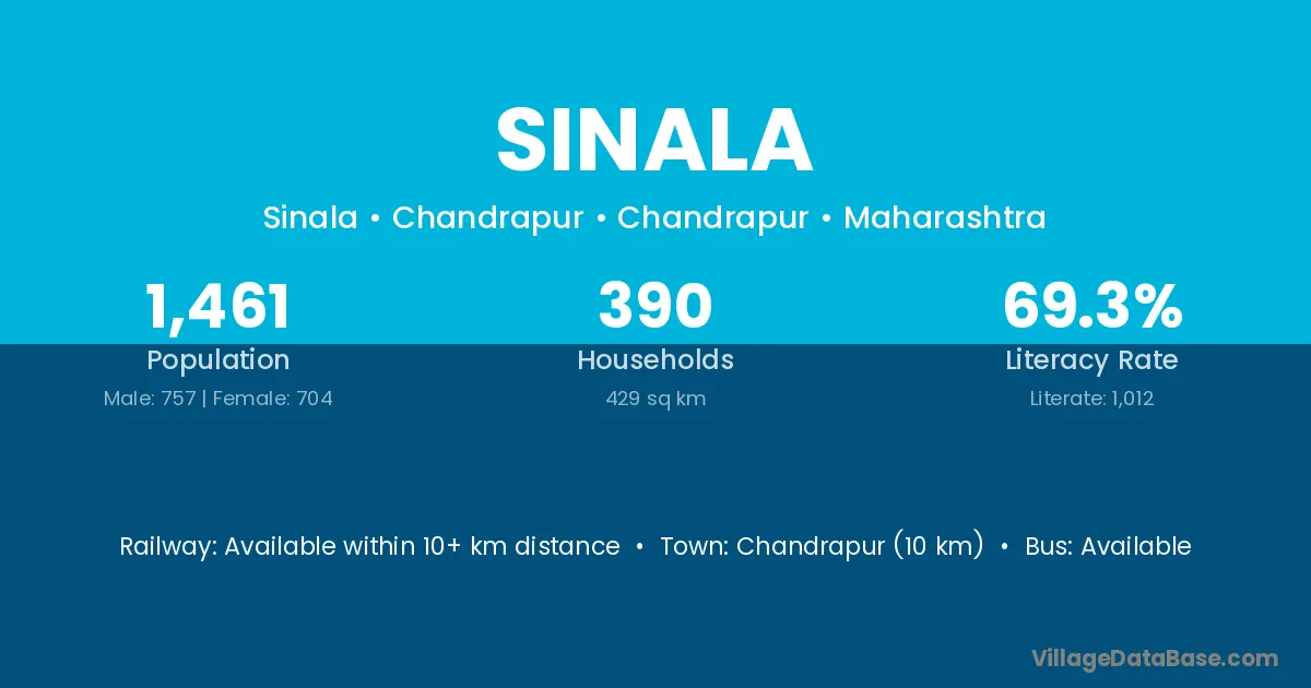 Chandrapur (10 km) is the nearest town to Sinala village for major economic activities and is located approximately 10 km away.