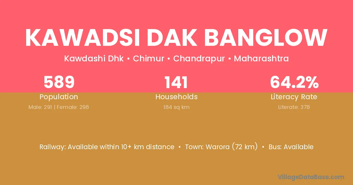 Kawadsi Dak Banglow village has a total population of 589 people, of which 291 are males and 298 are females.