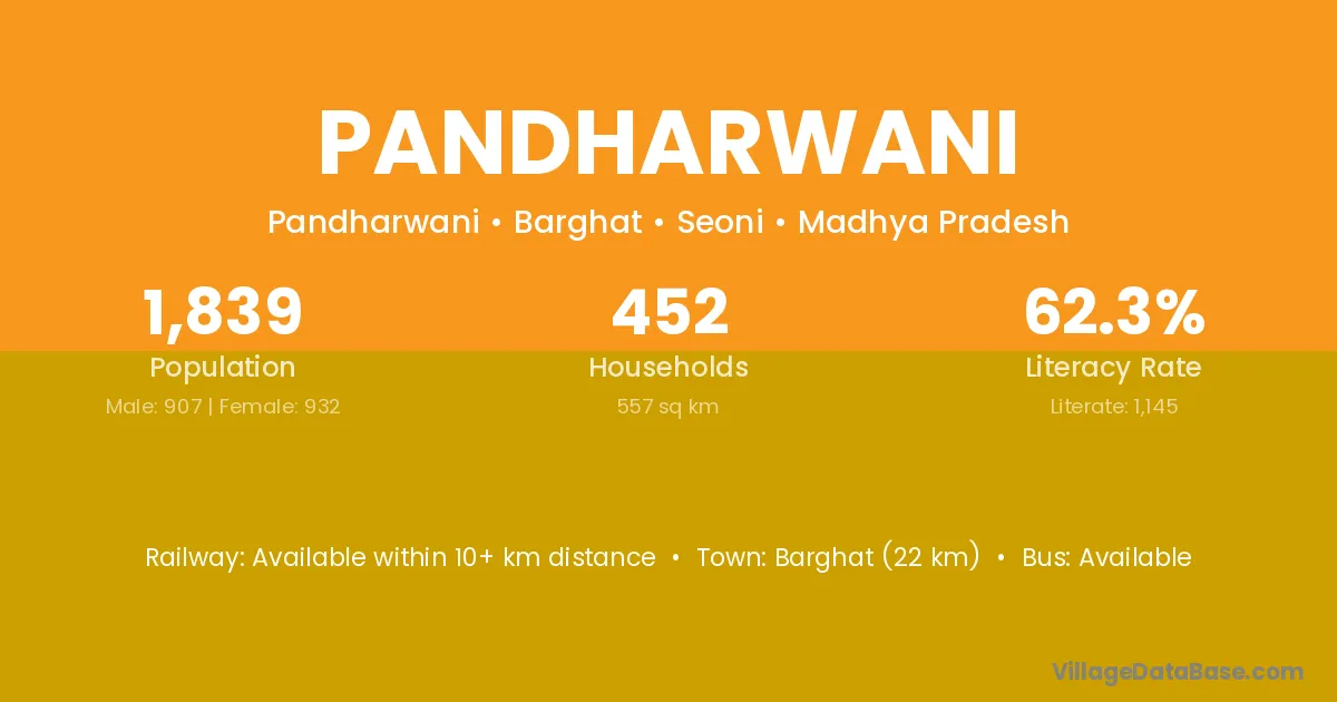 Warora (65 km) is the nearest town to Pandharwani village for major economic activities and is located approximately 65 km away.