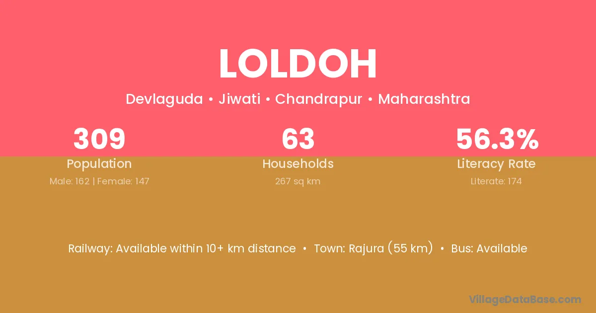 Rajura (55 km) is the nearest town to Loldoh village for major economic activities and is located approximately 55 km away.