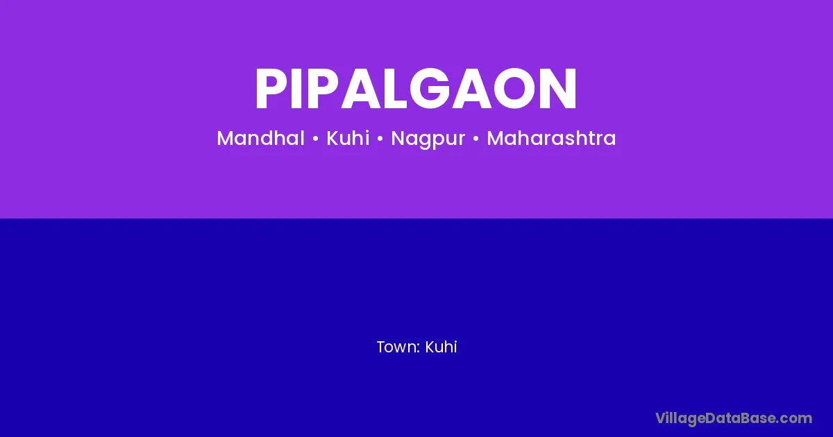 Rajura (25 km) is the nearest town to Pipalgaon village for major economic activities and is located approximately 25 km away.