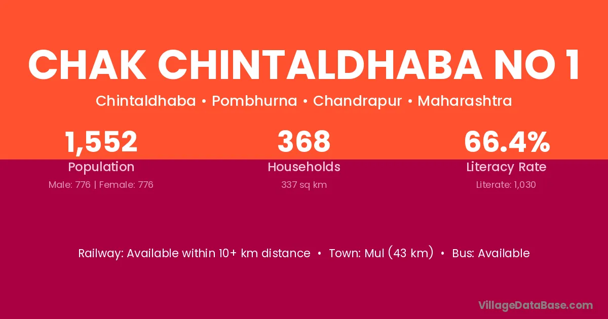 Mul (43 km) is the nearest town to Chak Chintaldhaba No 1 village for major economic activities and is located approximately 43 km away.