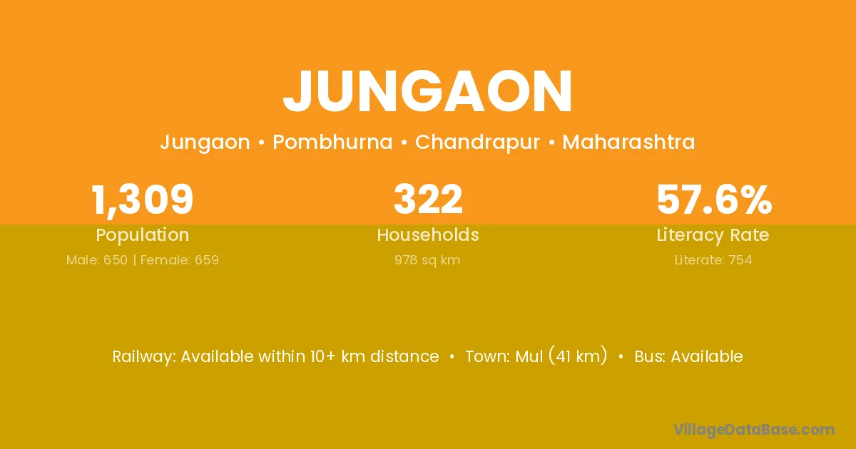 Mul (41 km) is the nearest town to Jungaon village for major economic activities and is located approximately 41 km away.