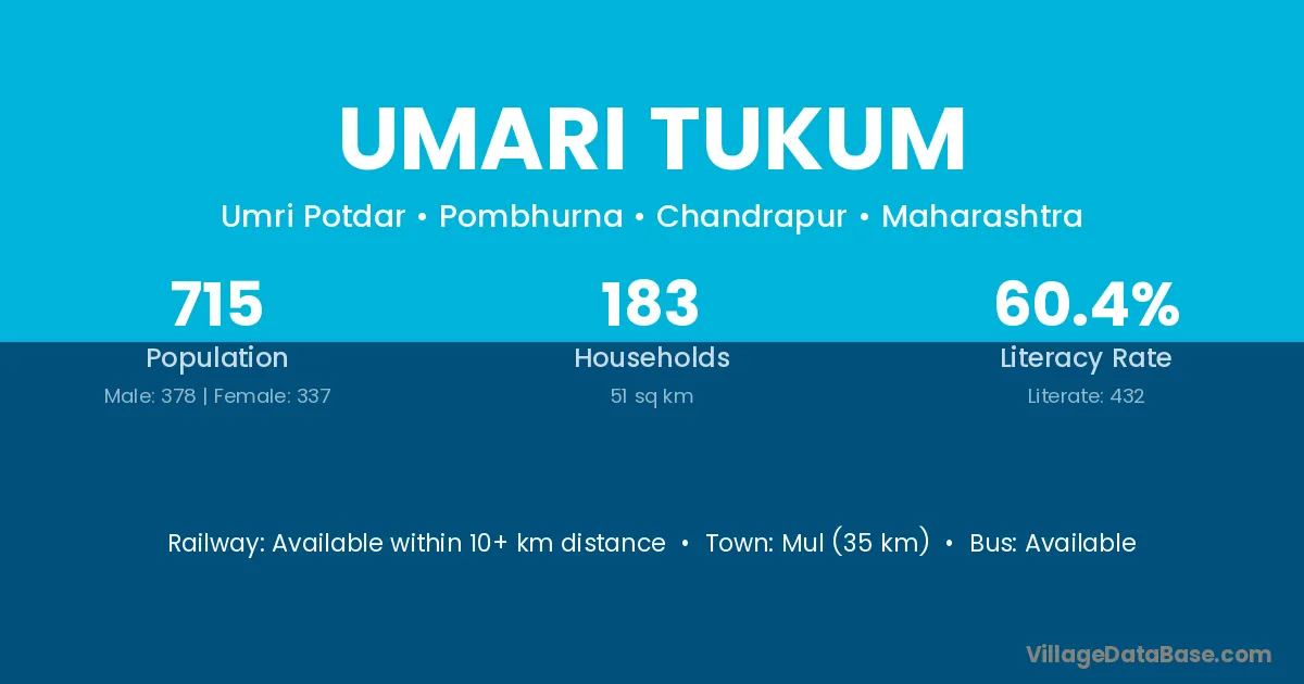Mul (35 km) is the nearest town to Umari Tukum village for major economic activities and is located approximately 35 km away.