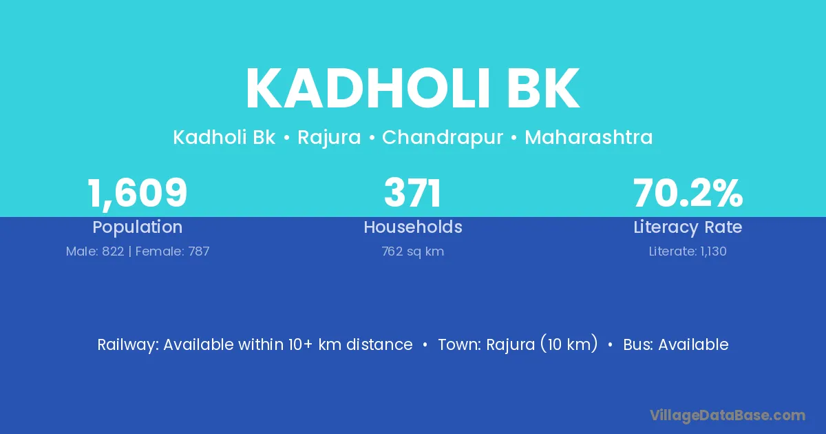 Rajura (10 km) is the nearest town to Kadholi Bk village for major economic activities and is located approximately 10 km away.